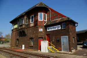 Das mechanische Stellwerk Wm der Bauart Jüdel wurde 1909 in Betrieb genommen. Durch umfangreiche Erweiterungen der Gleisanlagen auf der Magdeburger Seite des Bahnhofes Wittenberge kam es Ende der zwanziger Jahre des vergangenen Jahrhunderts zu einer Erweiterung des Stellwerkes in Richtung Norden (in Richtung Bahnübergang). Noch heute kann man bei genauen Hinsehen den Anbau ausmachen.