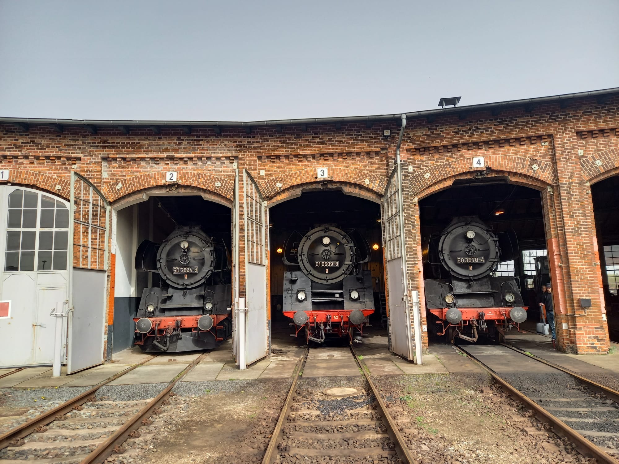 Im Lokschuppen waren die Schweißer und Schlosser fleißig und haben an den Fahrzeugen gearbeitet. In der Werkstatt waren alle Arbeitsplätze belegt.