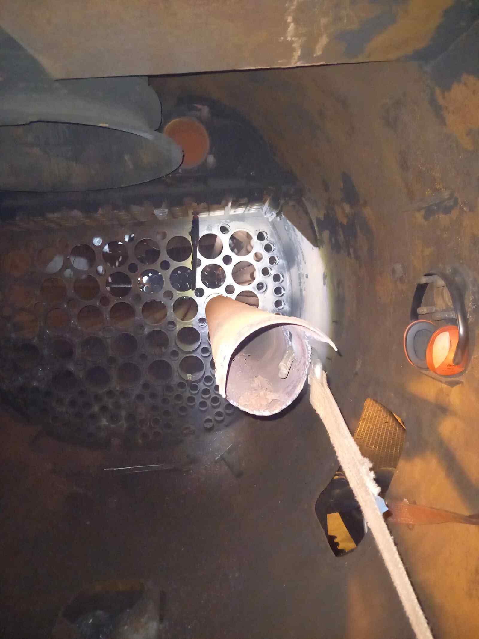 An den vergangenen Wochenenden widmeten wir uns mit Hochdruck den Arbeiten am Kessel unserer Dampflok 50 3570. Wie schon berichtet, sollten alle darin befindlichen Rohre ausgebaut und durch neue ersetzt werden. Diese Arbeit ist langwierig und dreckig und so freuen wir uns, dass diese Arbeiten nun abgeschlossen sind. Die heutigen Bilder zeigen einige Schnappschüsse von den Arbeiten. Zunächst ging es darum, die Rohre aus ihrer Verankerung zu lösen und dann aus dem Inneren des Kessels zu ziehen. Das kostet nicht nur Arbeit und Schweiß, sondern auch jede Menge Sauerstoff und Acetylen für die Schweißbrenner. Zu bedenken ist, dass die Rohre ziemlich schwer und unhandlich sind. Sie wiegen zwischen 40 und 80 Kilogramm, je nach Durchmesser. Man muss also schon bei Kräften sein, um die Arbeit zu absolvieren. Dafür schmeckt das Getränk zum Abschluss umso besser und man braucht nachher garantiert nicht mehr ins Fitness Studio.