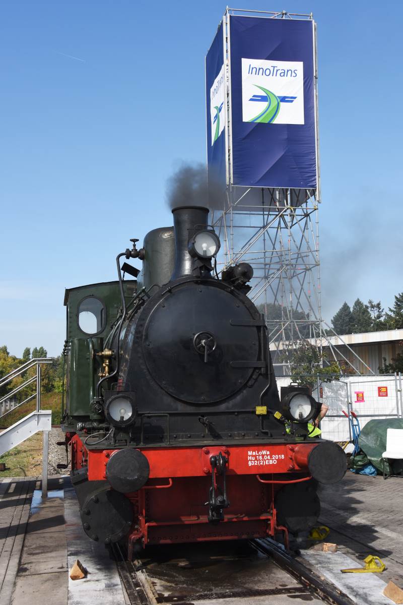 Unsere Dampflok "EMMA" gehört zweifelsohne zu den "Stars" auf der InnoTrans, der größten internationalen Fachmesse für Verkehrstechnik. Nachdem die Maschine wohlbehalten auf dem Messegelände angekommen war, wurde sie Montag (17.09.2018) von einigen Aktiven des "Historischen Lokschuppens Wittenberge" für den Einsatz auf der InnoTrans vorbereitet. Einen Tag später öffnete die Messe ihre Tore für das Fachpublikum. Zahllose Besucher aus aller Welt nutzen seither die einmalige Möglichkeit, auf dem Führerstand einer Dampflok mitzufahren. Die Lok ist immer dicht umlagert und die Aktiven haben alle Hände voll zu tun. Am 22. und 23. September 2018, den beiden Publikumstagen, ist das Messegelände für jedermann geöffnet. Auch an diesen beiden Tagen besteht die Möglichkeit für eine Führerstandsmitfahrt auf "EMMA", bevor sie dann in der kommenden Woche wieder in ihre Heimat Wittenberge zurückkehrt.