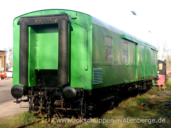 Wagen AutotransportwaggonIn unserem Besitz befindet sich der Autotransportwagen aus dem 1. Regierungszug der ehemaligen DDR. Der zuletzt als 60 50 99-54 679-4 bezeichnete Waggon wurde durch uns im Januar 2006 in letzter Sekunde vor der Verschrottung gerettet. Der ehemalige Pw4ü-30 (Gotha, 1930) überdauerte zuletzt als Bahndienstwagen im Leipziger Hilfszug die Zeit und kam erst 2004 nach Wittenberge ins ehemalige Raw.