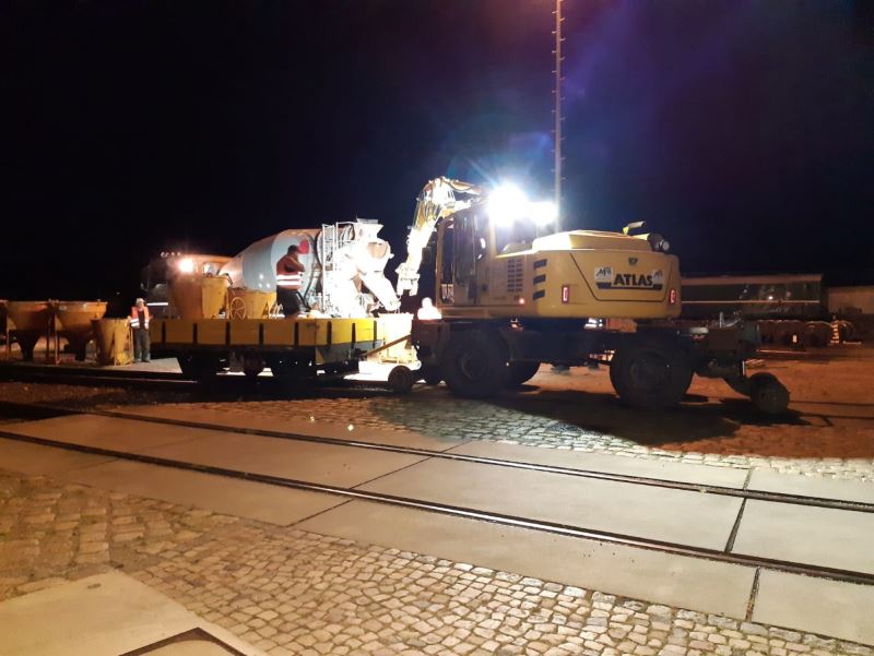 Nachdem die vergangenen Wochenenden der Erholung und dem Aufräumen nach dem erfolgreichen Sommerfest gewidmet waren, blickten die Aktiven an diesem Wochenende wieder nach vorne. Zunächst konnten wir beobachten, dass unser Museumsgelände als Logistikzentrum für die Bauarbeiten an den Bahnsteigen des Wittenberger Bahnhofs genutzt wurde. Hier wurden zur „blauen Stunde“ am späten Abend Baumaterialien auf Eisenbahnwagen verladen und mittels Zweiwegebagger zur Baustelle am Bahnhof gezogen.