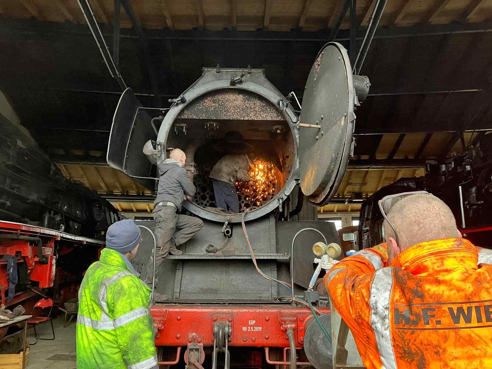 Da man bekanntlich nie genug Ersatzteile für die betriebsfähigen Lokomotiven haben kann, freuen wir uns über zwei schwergewichtige Neuzugänge in Form von zwei Dieselmotoren. Sie passen in unsere Dieselloks 114 774 und 118 754 und werden zunächst auf dem Museumsgelände eingelagert in der Hoffnung, dass wir sie so schnell nicht benötigen. Aber wie heißt es so schön? Besser haben als brauchen.