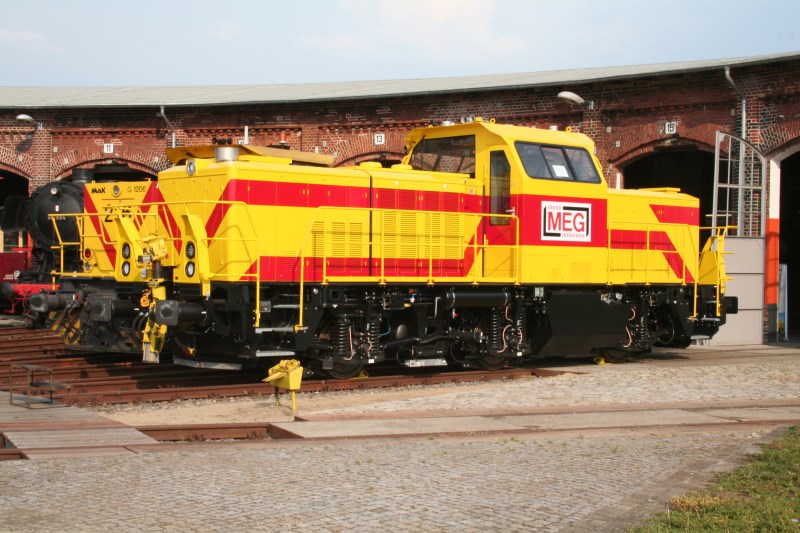 Bei unserer Veranstaltung am 4. und 5. Juli 2015 waren eine Hybridlok H3 von Alstom und eine dieselhydraulische Streckenlauflok vom Typ G1206 zu sehen. Beide sind derzeit bei der Mitteldeutschen Eisenbahngesellschaft (MEG) in Betrieb.