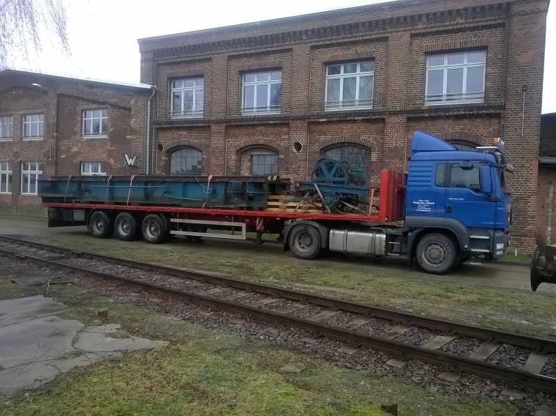 Wer die Verhältnisse im alten Bw Wittenberge kennt, weiß, dass es ehemals zwei Drehscheiben und noch einen weiteren Lokschuppen gab. Der Schuppen war als sogenannte Rotunde ausgebildet, also ehemals ein vollkommen geschlossenes Gebäude mit innen liegender Drehscheibe. Leider wurde das ganze bzw. die Reste davon Ende des letzten Jahrtausends abgerissen bzw. verschrottet. Nun, da man ja nie genug Platz in einem Museum haben kann, entstand vor einiger Zeit der Plan, doch mittelfristig an einen Wiederaufbau der Drehscheibe, Gleise und später Teilen des Gebäudes zu denken. Und manchmal geht es schneller als man denkt: So konnten wir kurzfristig die 20-Meter-Drehscheibe des ehemaligen Bahnbetriebswerkes Parchim erwerben, die noch relativ jung ist. Diese wurde in den letzten beiden Tagen demontiert und die Einzelteile nach Wittenberge verfrachtet. Als nächstes werden wir die Teile aufarbeiten, dann eine neue Grube erstellen. Unser Dank gilt allen Beteiligten für die schnelle und unkomplizierte Abwicklung. Die Fotos stammen von Dirk Endisch und entstanden am 12. und 13.1.2016.