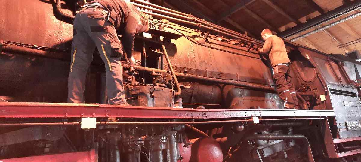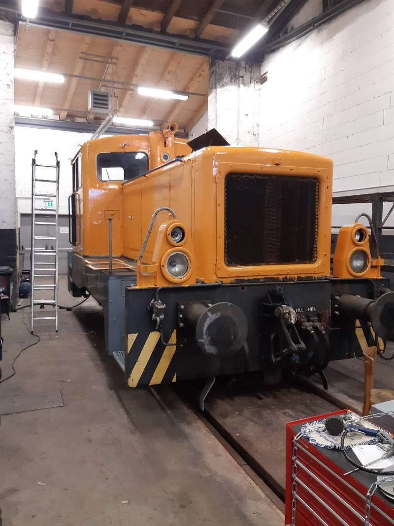 VB 197 805-5 seine Endlackierung erhalten hat und das Dach und die Fenster dicht sind, konnte er den Arbeitsstand auf Gleis 1 des Lokschuppens verlassen. Das Fahrzeug konnten wir zu unserer Veranstaltung am 2. und 3.7.2016 erstmals im neuen Gewand der Öffentlichkeit präsentieren.