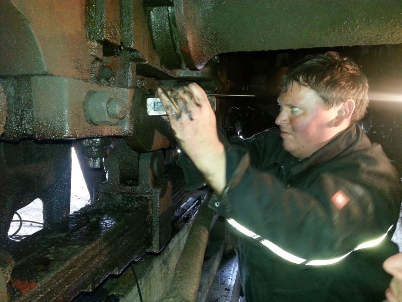 Außerdem wurde an den Achslagern gearbeitet, um den "reibungslosen" Lauf der Lokomotive sicherzustellen. Das ist mitunter eine sehr schmutzige Arbeit. Aber was soll es? Da lohnt sich das Duschen wenigstens.
